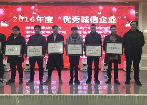 優(yōu)秀誠(chéng)信 ![]() (▲陳燕能董事長(zhǎng)右三) ![]() (▲陳燕能董事長(zhǎng)右二) 萬家利裝飾 榮獲金華2016年度“優(yōu)秀誠(chéng)信企業(yè)”