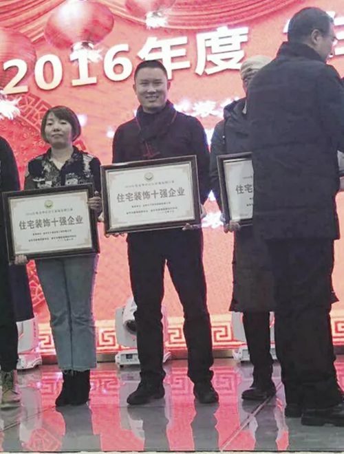 優(yōu)秀設(shè)計(jì) ![]() (▲陳燕能董事長(zhǎng)中間) ![]() 萬家利裝飾 榮獲金華2016年度“優(yōu)秀住宅設(shè)計(jì)企業(yè)”