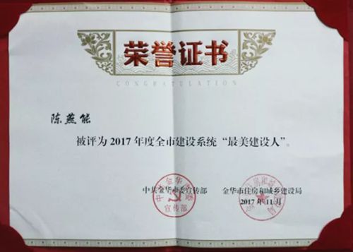 萬家利裝飾董事長(zhǎng)陳燕能榮獲2017年度金華“最美建設(shè)人” |