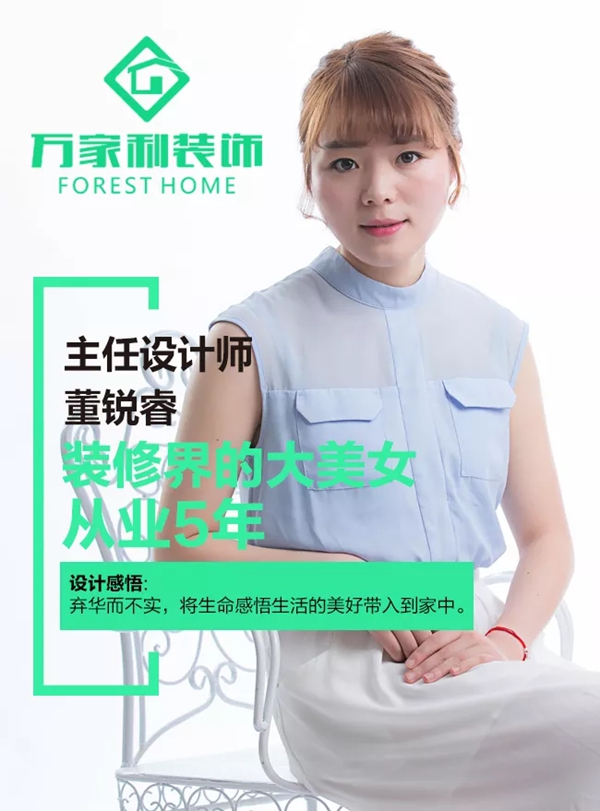 NO.6 裝修界不多見的大美女, 萬家利的獨寵 早在學生時期就獲得學校唯一的最佳設計獎 溫柔的外表、細膩的內心、專業的設計 都是業主給予的評價 保集莊園、歐景名城、香湖、新都會、麗澤花園 、 城市花園、御園、金地藝境、濱江金色藍庭等等小區 都因她的執筆而更具有魅力、獲得業主的褒獎