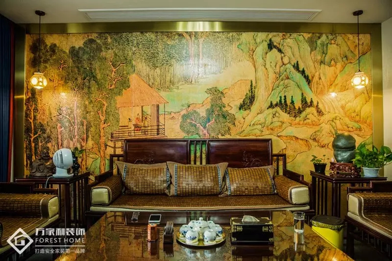 東方美講究含蓄而意味深長,自古遷客騷人在吟詩作賦時,多注重意象巧妙采用與組合;多注重情與志的婉轉蘊含與間接抒發。 水煮清茶,如細細研讀一本經典,這套190平米的中式水墨畫緩緩鋪陳于你眼前。