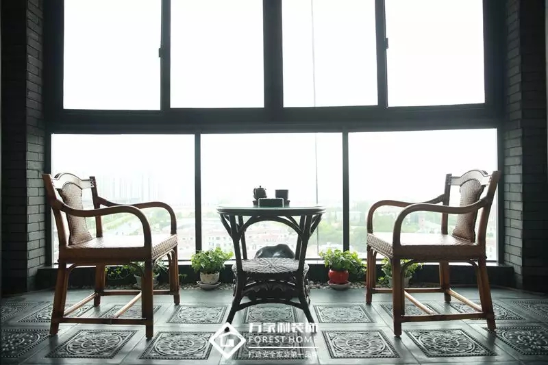 業主選擇把景觀陽臺全部打通,整體空間放大,家具造型簡潔流暢,雕刻圖案將簡潔與復雜巧妙地融合,既透露著濃厚的自然氣息,又體現出巧奪天工的精細。 在這里喝茶靜心,或品讀書籍,或體悟人生,慢慢享受這一份獨有的休憩時光。