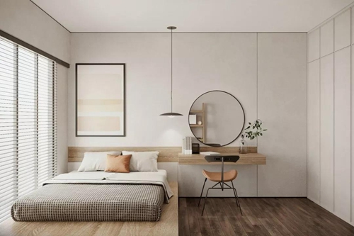 如果不想要純白色的墻面,可以嘗試把墻刷成灰色。灰色是中性色,能讓空間比較有高級感。想讓空間整體沒那么冷冰冰,更女性一點,更溫暖,可以選擇粉色和其他暖色調。