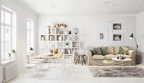清爽又簡潔的配色 Ins風格接近簡約北歐風,走的是極簡生態風格,原木餐桌、茶幾、躺椅,再搭配布藝,清爽又別致。家具的幾何線條簡潔而不花俏,再搭配點綴整個空間的小裝飾物,沒有過分的人工痕跡,舒適中透著慵懶。 色彩上,ins風比較接近簡約的北歐風格,使用大面積純色,搭配一些中性色比如米色、原木色等讓整個空間簡約又不簡單。