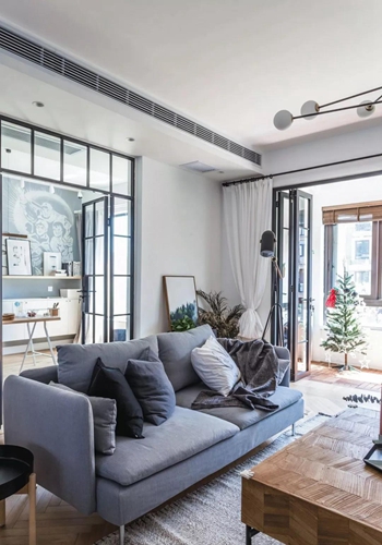 這種將客廳與書房之間設改造成玻璃隔斷墻的設計, 空間的采光與通透度得到了大大的提升,完全沒有小戶型的局促感。