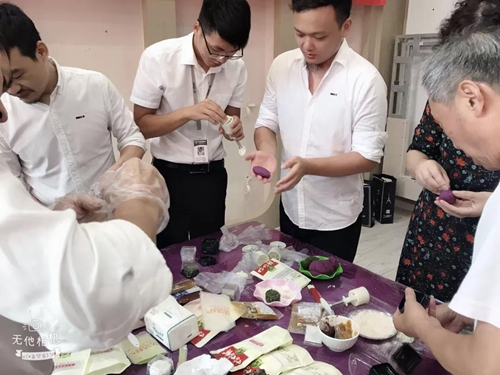 從包月餅餡再到用模具做出月餅, 小伙伴們揉、壓、團,熱火朝天地開始做著, 一個個高顏值的冰皮月餅就做好了。