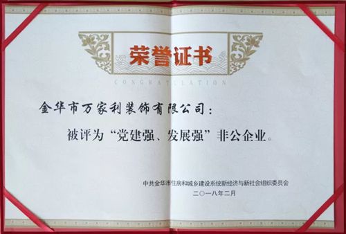 萬家利裝飾榮膺“黨建強、發展強”非公企業 |