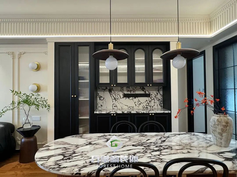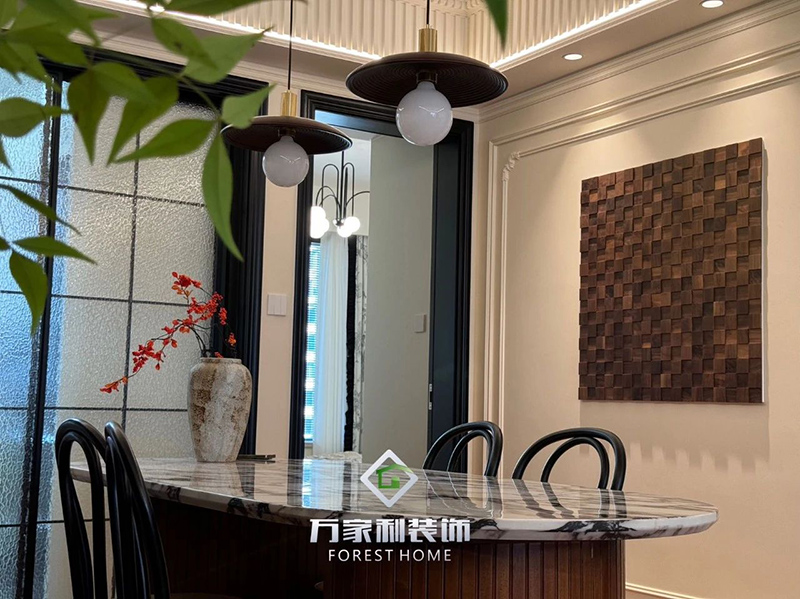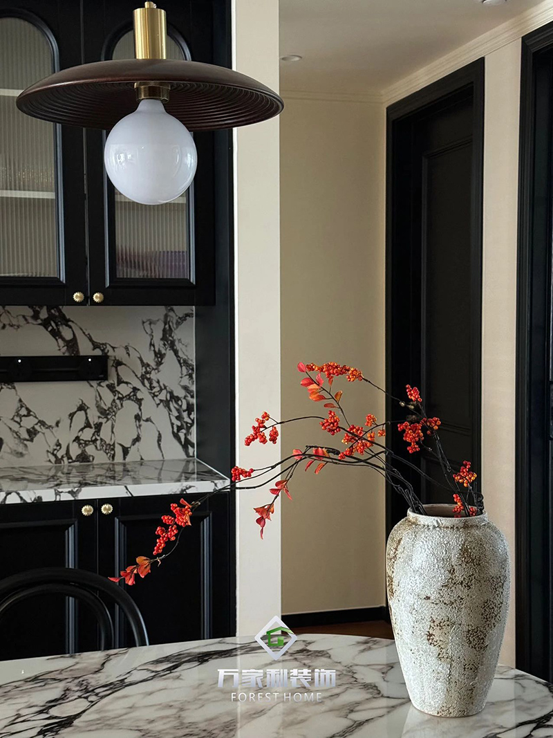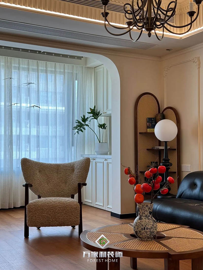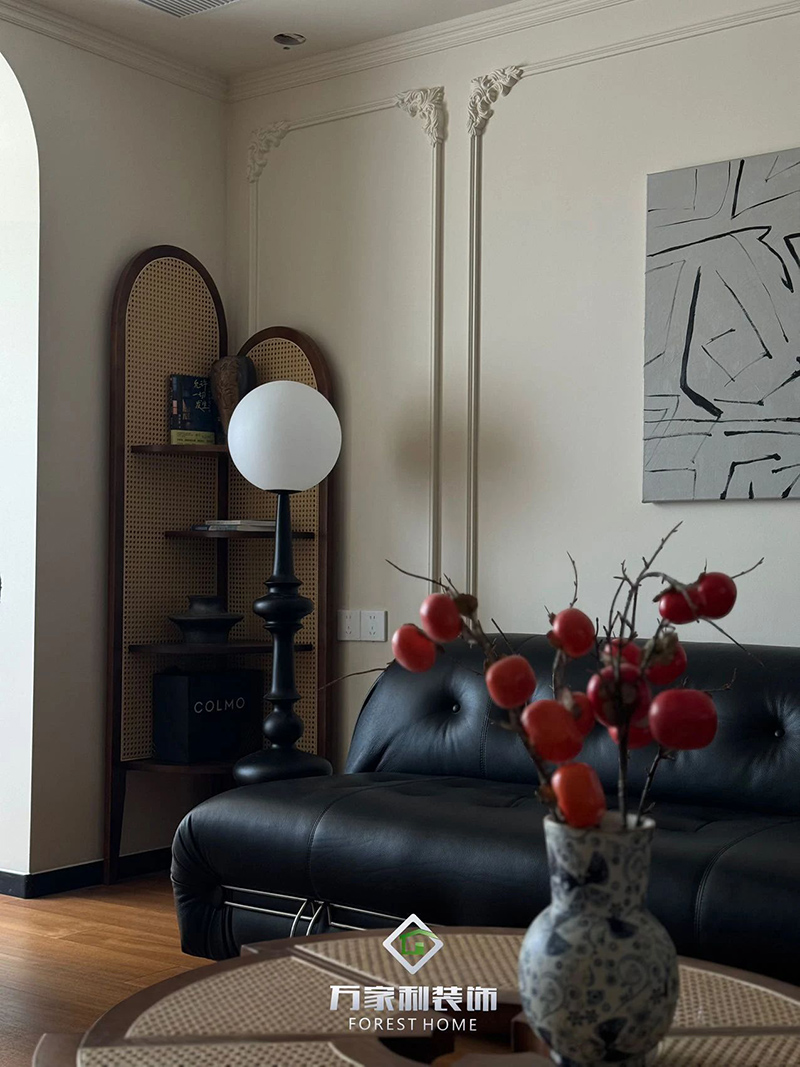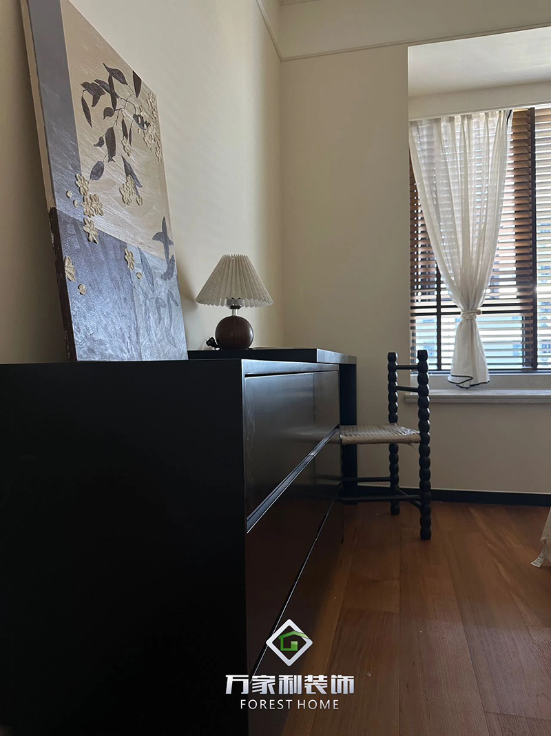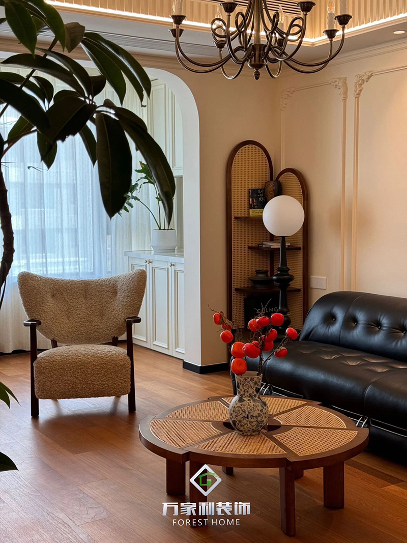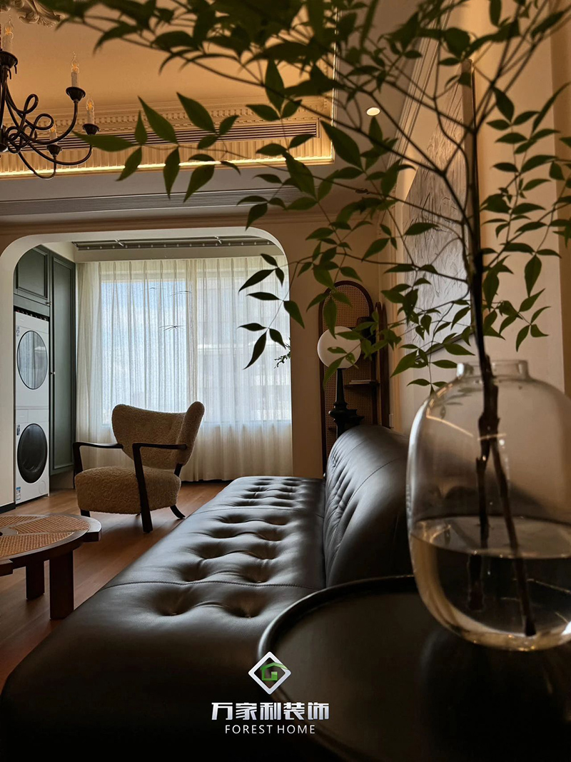 在軟裝方面,中古風強調的是舒適自然,復古的陶瓷器皿,綠植,木質百葉,紗質窗簾,都能為空間增添一份溫馨和生機。