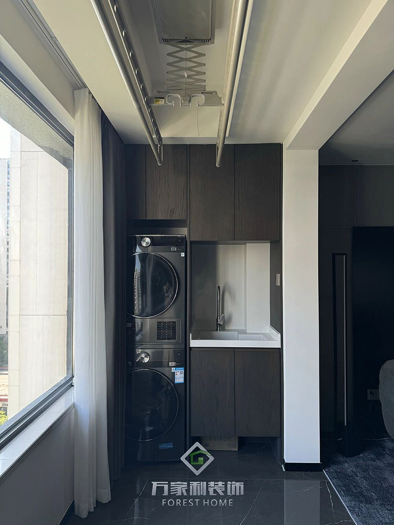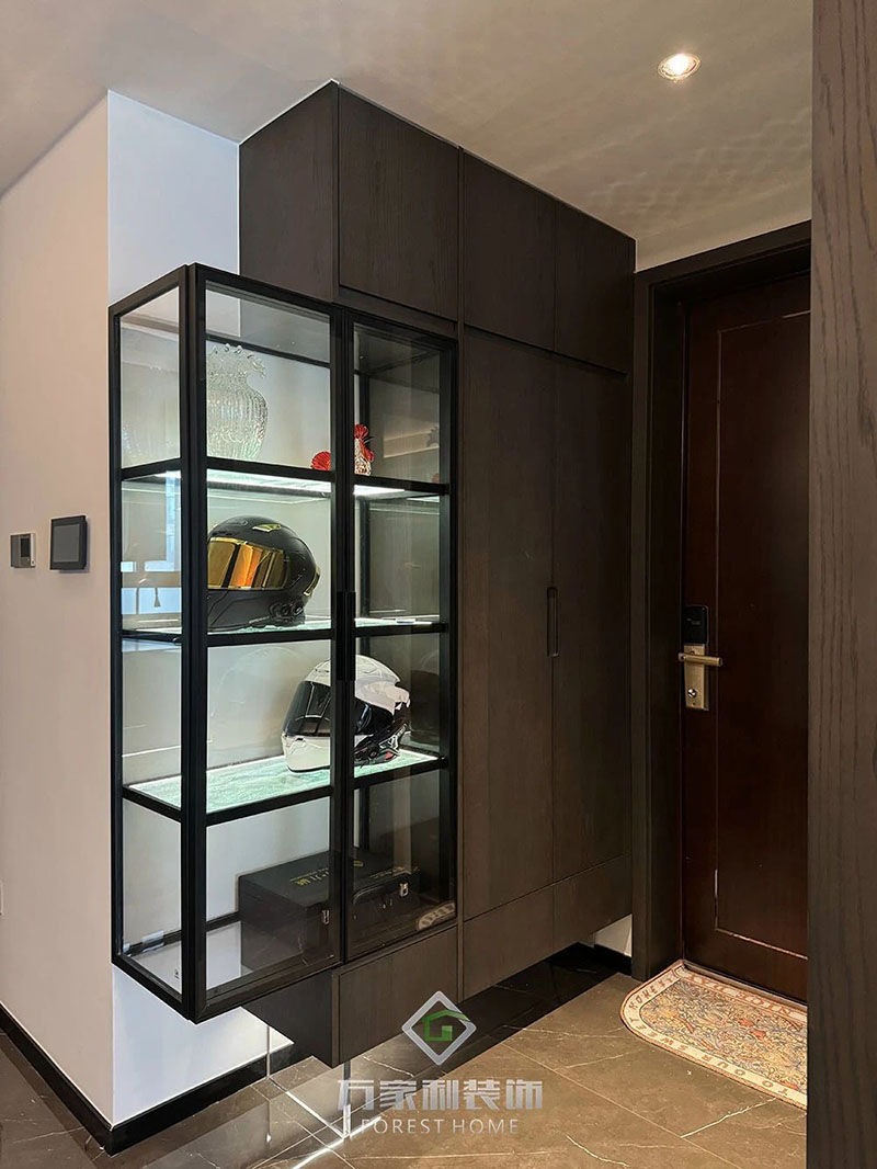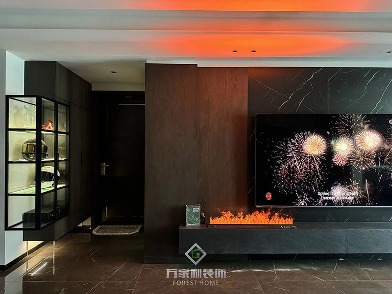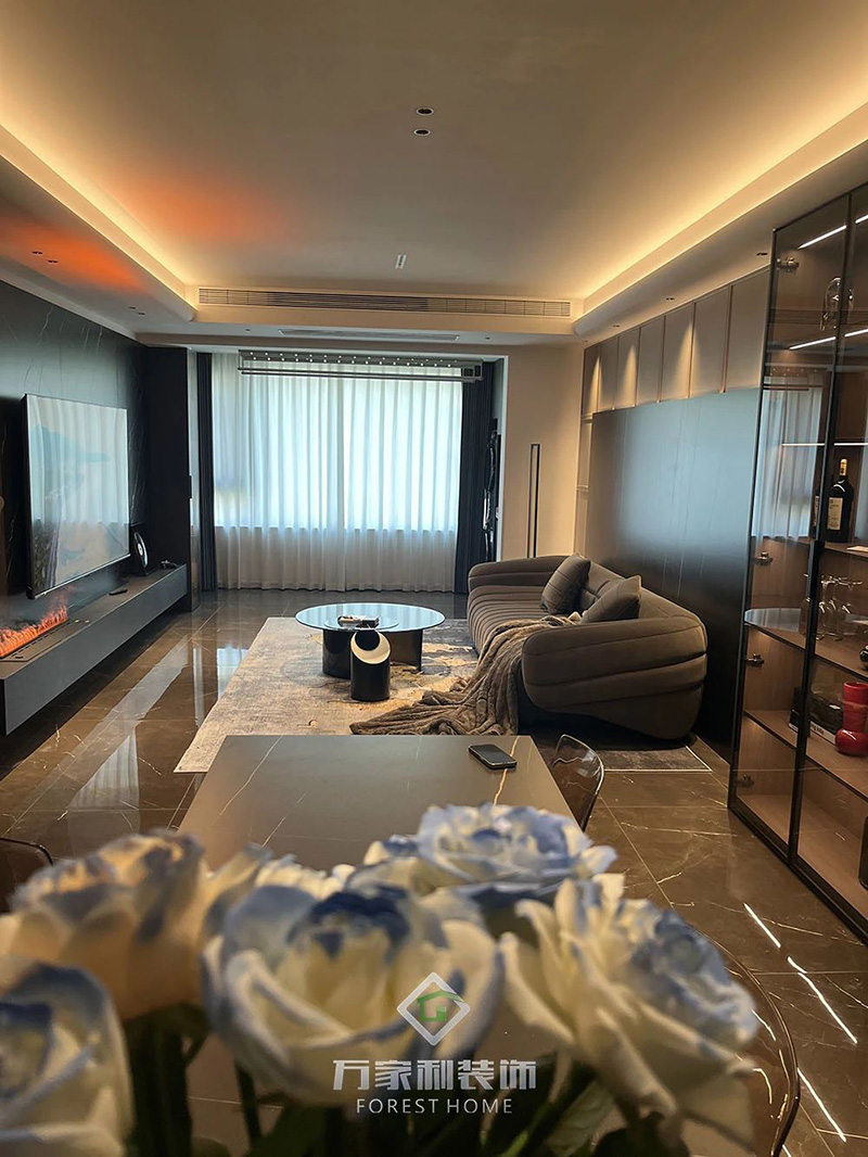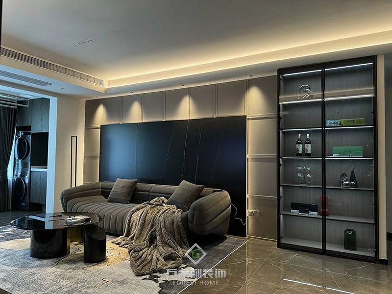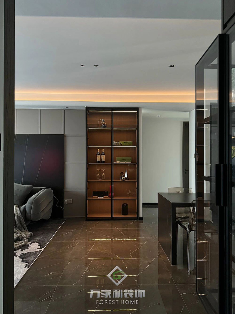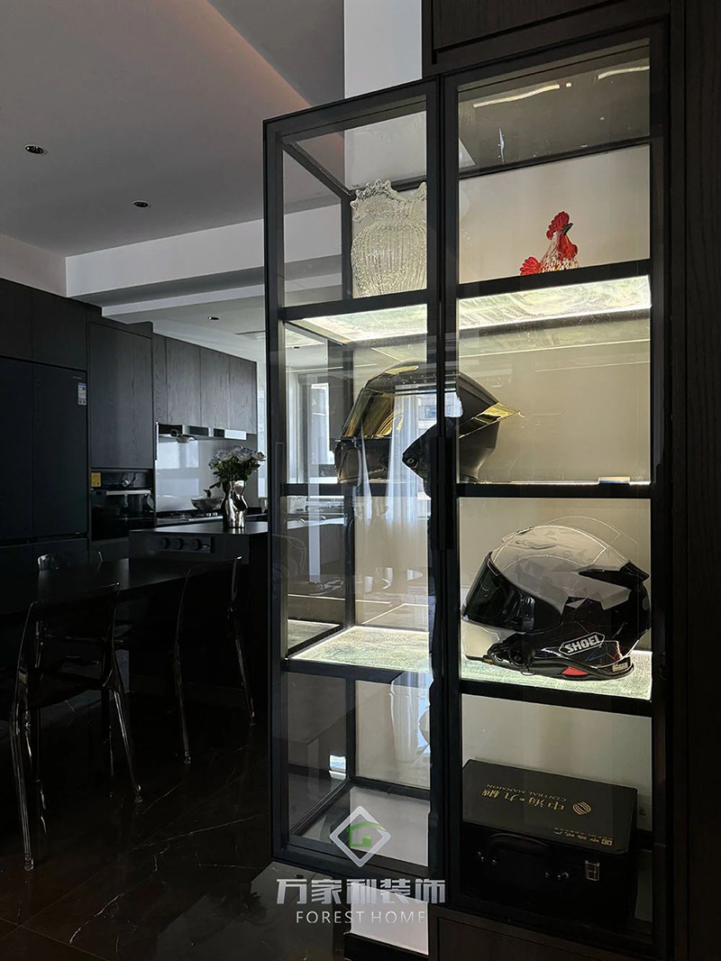 這是一位男士專屬空間,他追求生活的質(zhì)感與情調(diào),享受一杯佳釀帶來的平靜時光;他是追逐速度與自由的探索者,摩托車承載著他對未知世界的渴望。設計師以現(xiàn)代暗黑風為基調(diào),打造了一個充滿個性與質(zhì)感的家。