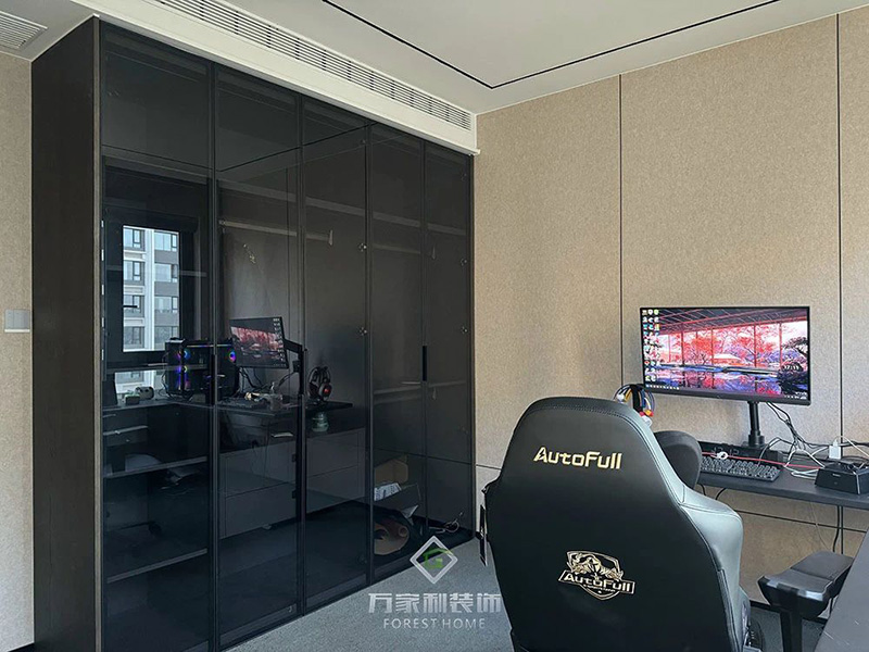 走進設計師精心打造的電競房,仿佛踏入了一個充滿未來感的科技世界。舒適的電競椅,貼合人體工學設計,讓男主人在游戲中盡享絲滑流暢的操作體驗,釋放壓力。