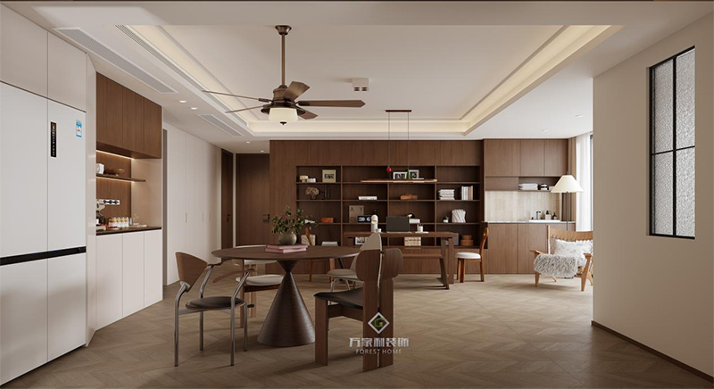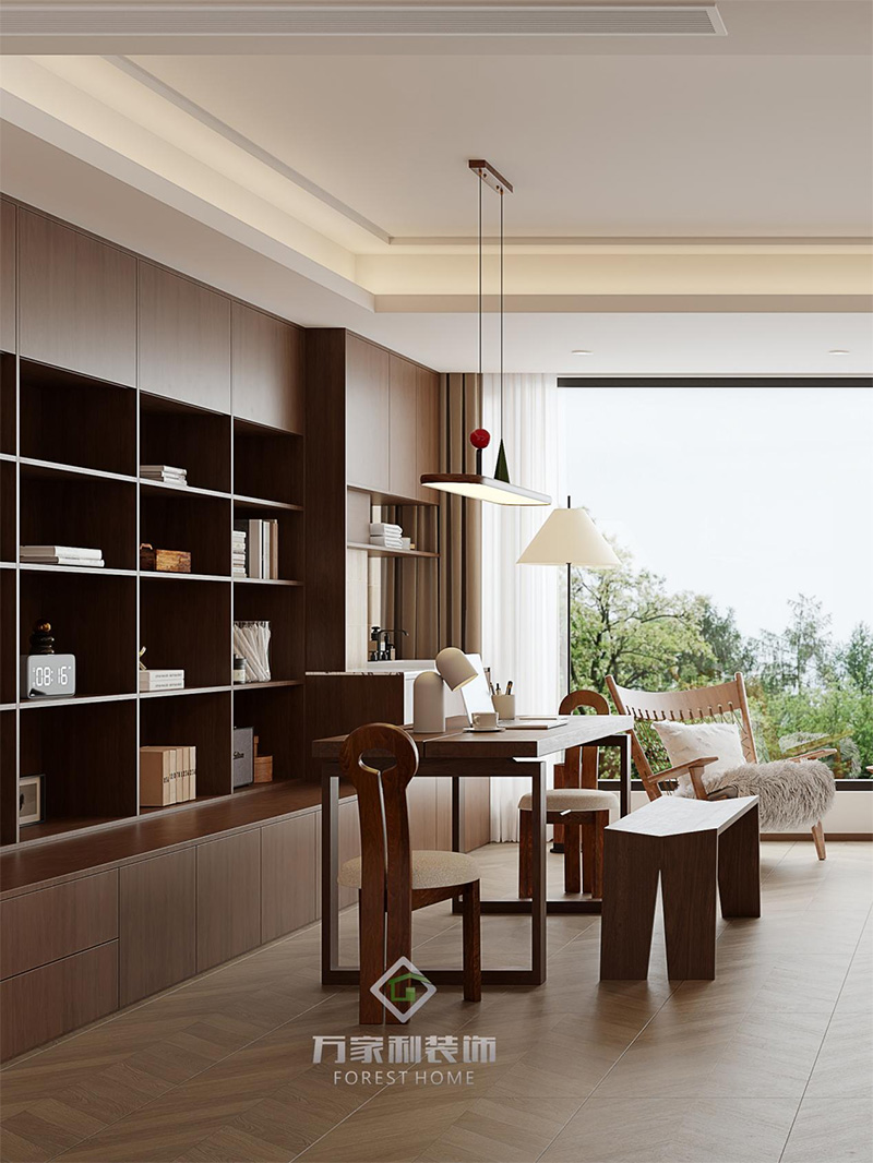 是書房也是客廳,整書房客廳一體化,沒有特定風(fēng)格,有的就是業(yè)主喜歡的極簡中古感,在舒適的環(huán)境里給自己放松。