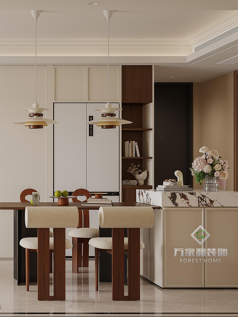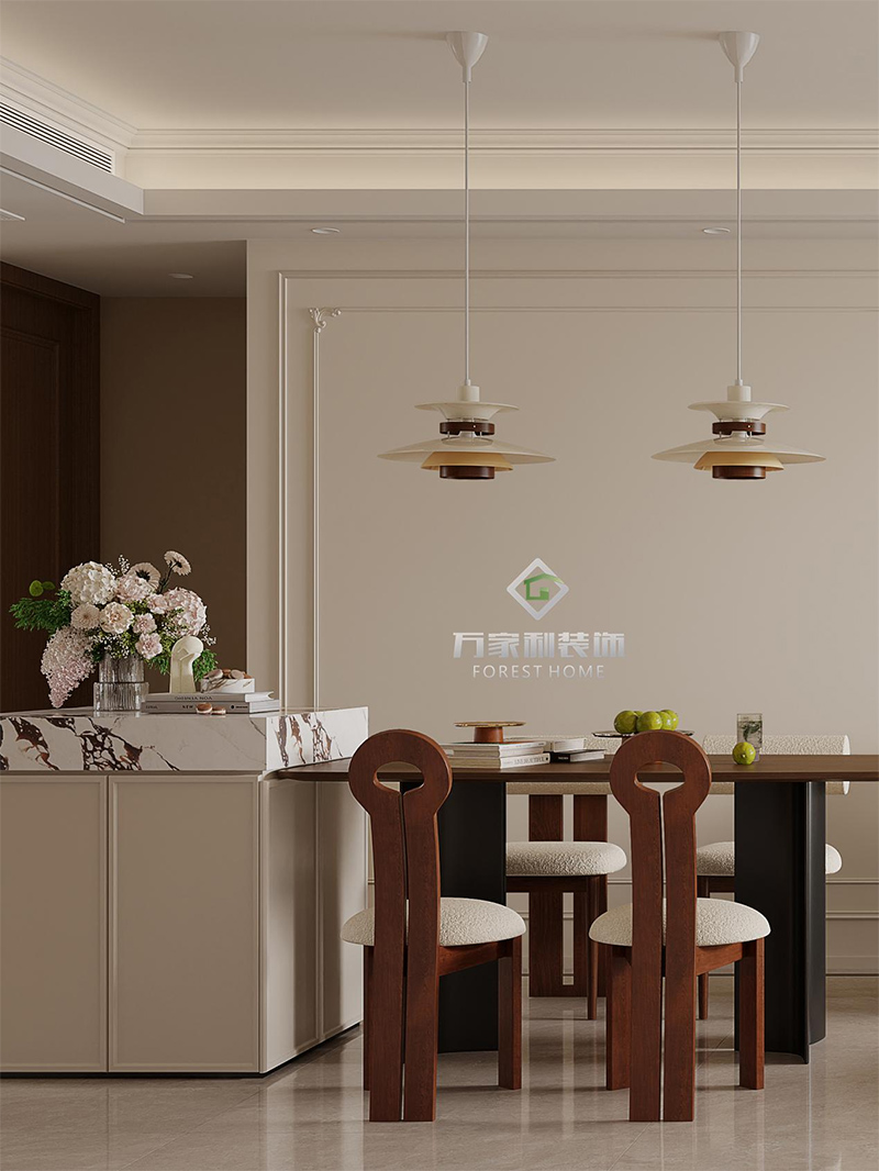 大理石臺面像海浪一樣,精致又耐看,簡簡單單的無主燈設計,卻滿屏高級.