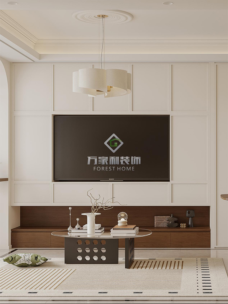 電視背景墻采用了骨骼線柜子,骨骼線設計增加了整體的立體感和層次感,簡潔的線條高級感拉滿