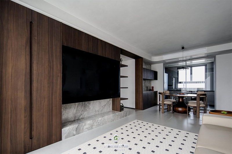 微水泥+柚木色|全屋通刷暖調微水泥,溫柔感拉滿